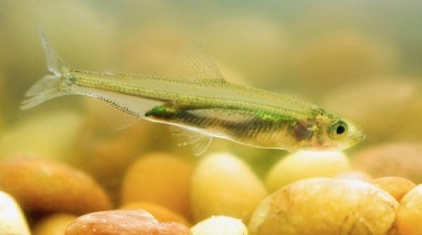 Image: Delta Smelt A juvenile Delta Smelt swims above a structured bottom in California's San Joaquin delta. © California Dept. of Water Resources.