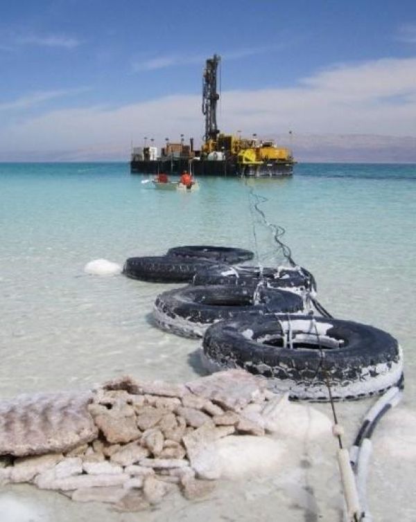 Image: The scientific platform used to drill the sediments of the Dead Sea. (Credit: © ICDP)