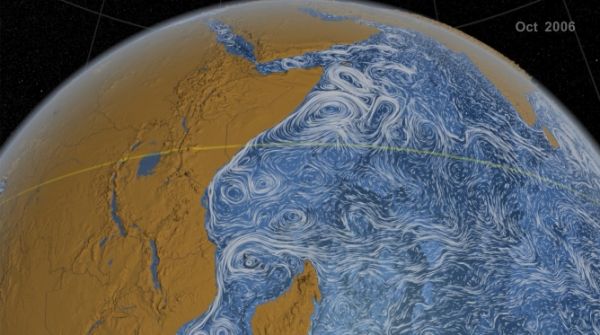Image: Researchers have found a new way to use satellites to monitor the Great Whirl, a massive whirlpool the size of Colorado that forms each year off the coast of East Africa, shown here in a visualization of ocean currents in the Indian Ocean. (Credit: NASA Scientific Visualization Studio)