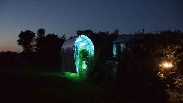 Image: The Light and Plant Health project team, led by Cornell AgriTech’s David Gadoury, has developed inexpensive, efficient lighting and delivery systems, such as low-tech tractor attachments, to treat plants with UV light. CREDIT: Cornell University