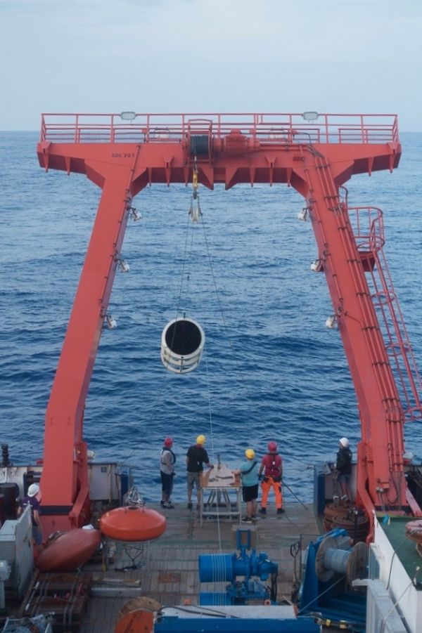 Photo: A sediment trap is retrieved from the sea. In these traps, particles are collected from the water column over an extended period of time, usually for one year. From the samples, scientists can learn when and where the various species live today. CREDIT: MARUM – Center for Marine Environmental Sciences, University of Bremen; C. Schmidt