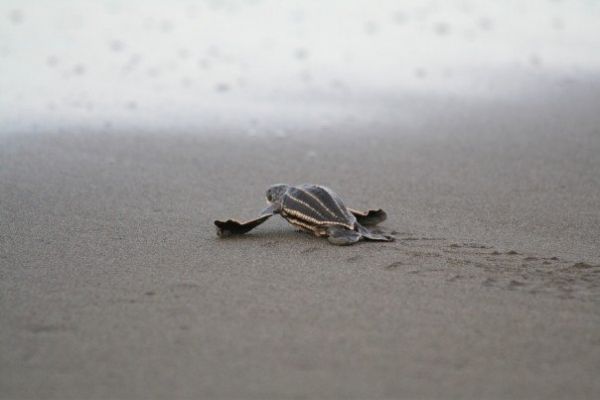 Photo: Location matters: This young leatherback sea turtle hatched in Costa Rica. It could be part of the relatively healthy Caribbean population, or it might be crawling toward the Pacific, where the species is critically endangered. Photo Credit: CASEY O'HARA