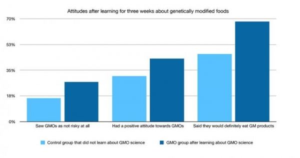 Changed attitudes after learning for three weeks about genetically modified foods. (Credit: Jonathon McPhetres/University of Rochester)