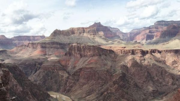 Image: This view of the Grand Canyon shows the Great Unconformity, a boundary where nearly a billion years' worth of sedimentary deposits is missing from the geologic record. The boundary can be seen at roughly the middle of this image, separating the older, lumpy and angular rocks below from the younger horizontal layers above. New research suggests that the missing sediments, likely scrubbed away by glaciers during the global "snowball Earth" that ended roughly 635 million years ago, washed away to the oceans, where they lubricated subduction faults and kick-started the modern age of plate tectonics. (Credit: USGS/Alex Demas)