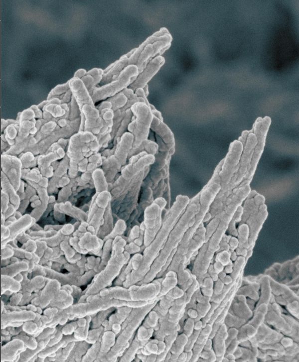 False colour image of calcium phosphate deposits on bone.(Credit: Melinda Duer/Cathy Shanahan)