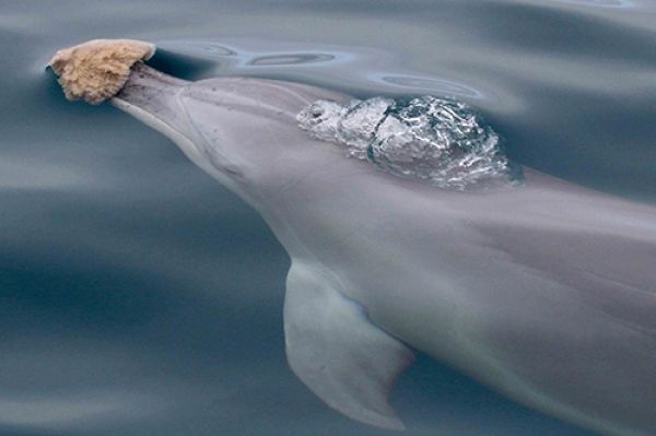 Image: Bottlenose dolphin with a sponge in Shark Bay. CREDIT: Stephanie King