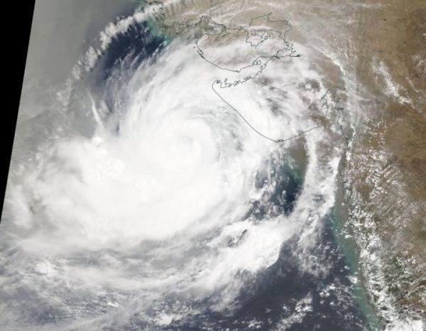 Image: On June 14, 2019, the MODIS instrument aboard NASA's Terra satellite provided a visible image of Tropical Cyclone Vayu off India's Gujarat coast, western India. (Credit: NASA Worldview, Earth Observing System Data and Information System (EOSDIS))