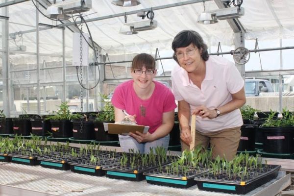 Image: Illinois Sustainable Technology Center researchers Elizabeth Maschewski, left, and Nancy Holm and collaborators developed a systematic study to test the effectiveness of the soil additive biochar and found that it may not be as effective as previously thought. (Credit: Photo courtesy Nancy Holm)