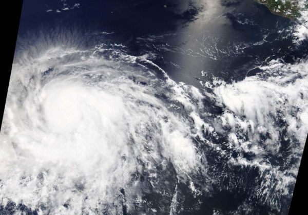 On July 2, 2019, the MODIS instrument aboard NASA's Terra satellite provided a visible image of Hurricane Barbara in the Eastern Pacific Ocean, now far from western Mexico. (Photo credit: NASA Worldview, Earth Observing System Data and Information System (EOSDIS))