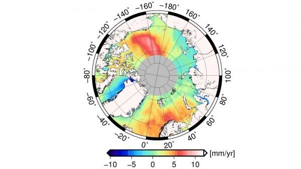 The map illustrates that the average change in the Arctic sea level varies regionally. (Photo Credit: DTU/DGFI-TUM)