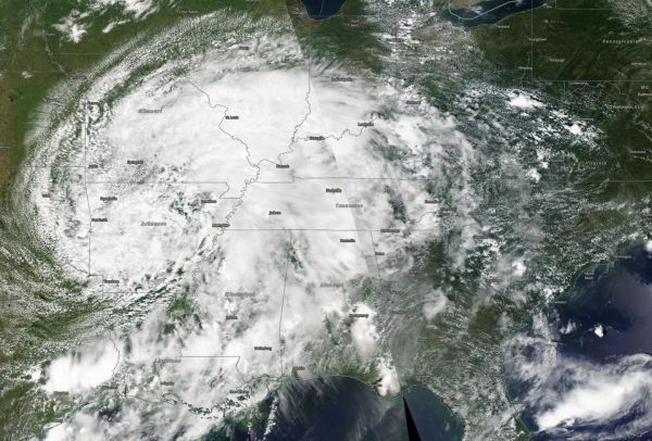 Image: NASA's Aqua satellite captured this visible image of post-tropical cyclone Barry on July 15, 2019 as it was moving through the Mississippi Valley. (Credit: NASA Worldview)