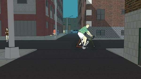 Image: When people notice one traffic hazard, they are less likely to see a simultaneous second hazard, according to new research from NC State. The study used images like the one shown here. Viewers were less likely to notice the jogger on the left when the bicyclist was also in the image. (Credit: Robert Sall, NC State University)