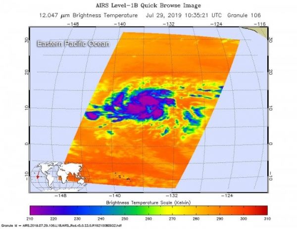 NASA’s Aqua satellite analyzed the storm on July 29, at 6:35 a.m. EDT (1035 UTC) using the Atmospheric Infrared Sounder or AIRS instrument. The stronger the storms, the higher they extend into the troposphere, and they have the colder cloud temperatures.