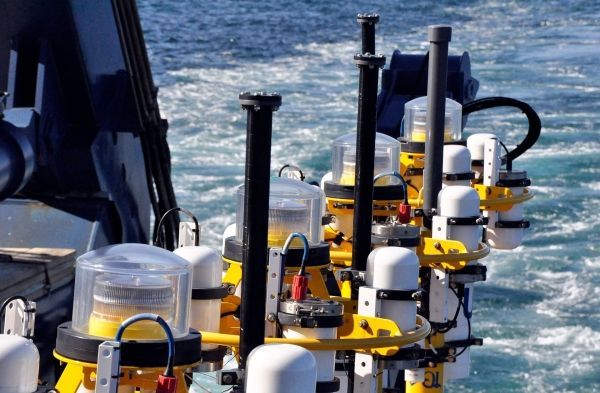 Photo: The Pioneer Array includes a variety of instruments that can measure ocean conditions during hurricanes. This includes Coastal Profiler Moorings, which are shown here on the R/V Atlantis prior to deployment. (Photo by John Lund, Woods Hole Oceanographic Institution).