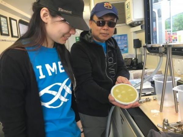 Image: Graduate student Menqi Sun and Professor Feng Chen filter bacteria out of sea water. CREDIT: University of Maryland Center for Environmental Science