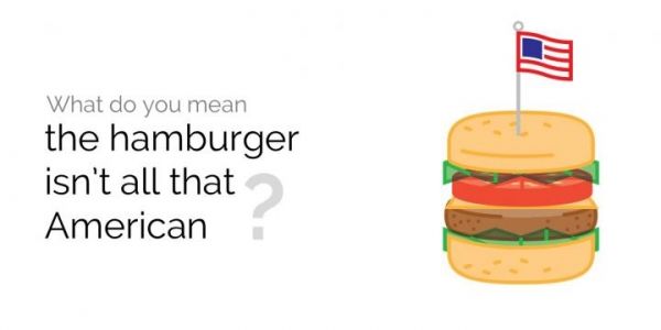 Image: Hamburgers are an American favorite, but the origins of this meal's common ingredients are as diverse as the US population. The meat patties were first served in Hamburg, Germany, and appeared on menus in New York City as early as the 1870s thanks to German immigrants. (Credit: Graphic: Álvaro Valiño, Kelsey Nowakowski and Colin Khoury)