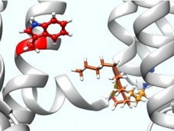 Shown is a computer simulation of E-2-dodecenal (orange) docking in its predicted binding site on the neuronal KCNQ potassium channel. (Photo C