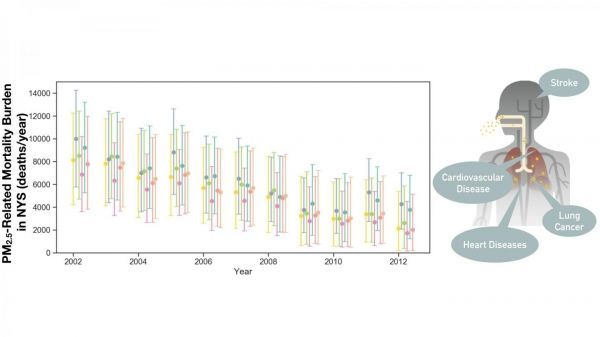 A new study charts declines in New York State air-pollution-related deaths due to various ailments over a decade. (Photo Credit: Courtesy Xiaomeng Jin)