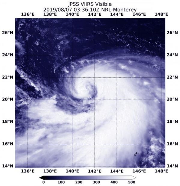 Image: NOAA's NOAA-20 polar orbiting satellite passed over the Northwestern Pacific Ocean and captured a visible image of Tropical Storm Krosa on Aug. 7, 2019. (Credit: NASA/NRL/NOAA)