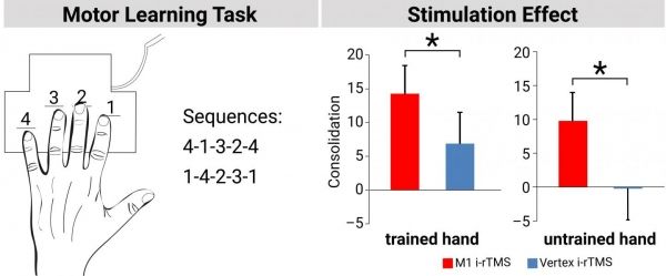 When exactly does the brain "remember" a newly learned motor sequence? Previously, it was assumed that the stabilization of learned motor processes does not begin until the exercise is complete and then runs for several hours. However, recent work shows that already short breaks within practice sessions shape later recall. "We wanted to understand how relevant the so-called consolidation or perpetuation in these short pauses during practice is for later recall, after several hours, and whether we can influence these processes with brain stimulation," said first author Jost-Julian Rumpf. The neurologist developed the study with healthy participants together with MPI researcher Gesa Hartwigsen. Participants had to type a simple sequence of numbers on a keyboard as quickly and accurately as possible. During practice, short pauses were taken after a certain number of trials and participants received magnetic stimulation of the brain during these breaks. The scientists wondered what was going on in the brain during the pauses – could it be that it was already learning at this point?