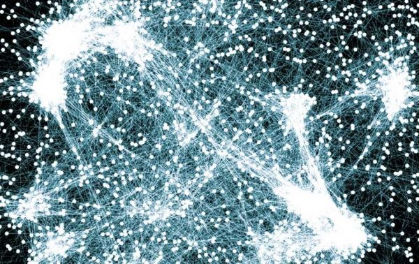 Visualizations: Genes and proteins in cells interact in many different ways. Each dot represents a gene; the lines are their interactions. For the first time, the new method uses biotechnology to influence entire gene networks in one single step. CREDIT: ETH Zurich / Carlo Cosimo Campa