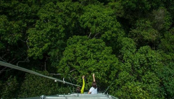 Image: View from the top of a measurement tower, where researchers monitor critical forest canopy processes such as photosynthesis, plant water fluxes, leaf characteristics, and growth. (Credit: Joao M. Rosa, AmazonFACE)
