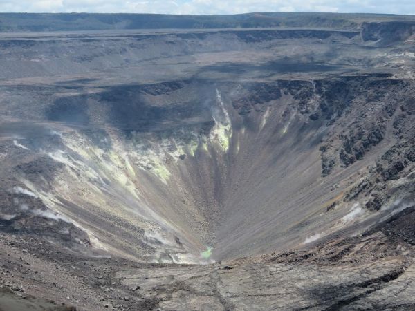 On July 25, 2019, a helicopter pilot flying a U.S.Geological Survey mission over Kīlauea noticed an unusual green patch at the bottom of Halema‘uma‘u, the crater at the summit of the volcano.