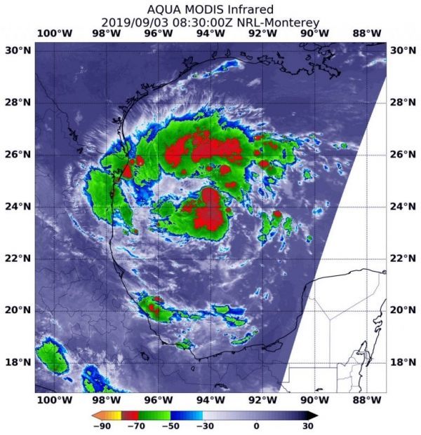 Another Atlantic Ocean basin depression formed while Hurricane Dorian is still wreaking havoc on the Bahamas and affecting the southeastern U.S. Infrared imagery from NASA’s Aqua satellite shows that Tropical Depression 7 in the western Gulf of Mexico has developed powerful thunderstorms with heavy rain capabilities. That potential for heavy rainfall includes southern Texas and northeastern Mexico.