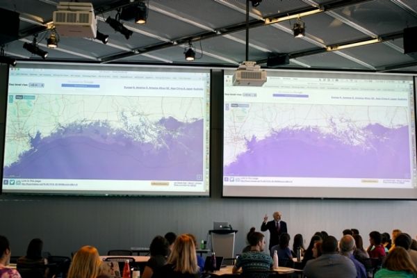 At “SimPlanet” event, students test-drive new computer simulation to reveal outcomes of different policy decisions.