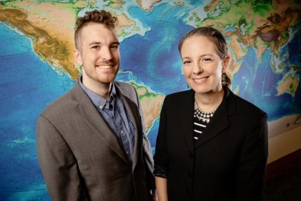 University of Illinois geologists Jack Albright, left, and professor Patricia Gregg are part of a team that has developed new computer models to help researchers better forecast volcanic eruptions. (Photo Credit: Photo by L. Brian Stauffer)
