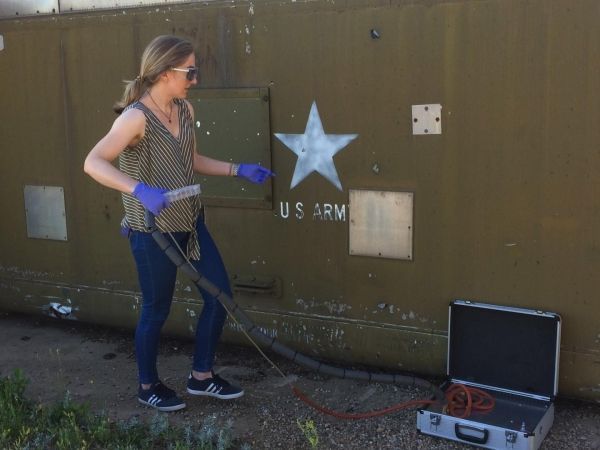 Image: NIST chemist Megan Harries tests whether a portable, high-tech sniffing device called a PLOT-cryo system can be used to screen shipping containers for dangerous airborne chemicals at ports of entry. For this test, which was performed at the NIST campus in Boulder, Colo., Harries used an old US Army communications bunker as a stand-in for a shipping container. (Credit: Image courtesy of Megan Harries)