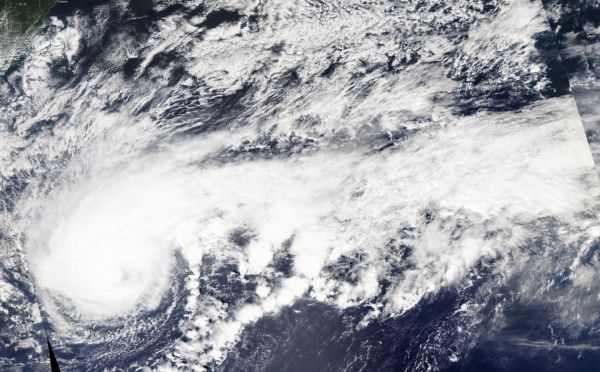 On Sept. 18, the MODIS instrument that flies aboard NASA's Aqua provided a visible image of Hurricane Humberto north of Bermuda. Powerful thunderstorms circled the center and a large band stretched hundreds of miles east. Aqua cloud height and temperature data revealed Humberto was taking on an extra-tropical hybrid structure. (Photo Credit: NASA Worldview, Earth Observing System Data and Information System EOSDIS)
