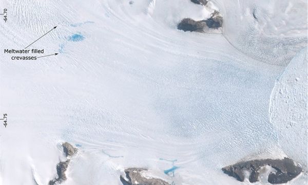 The new research, published today in Nature Communications, shows that accelerations in Antarctic Peninsula glaciers’ movements coincide with spikes in snowmelt. This association occurs because surface meltwater penetrates to the ice bed and lubricates glacier flow.