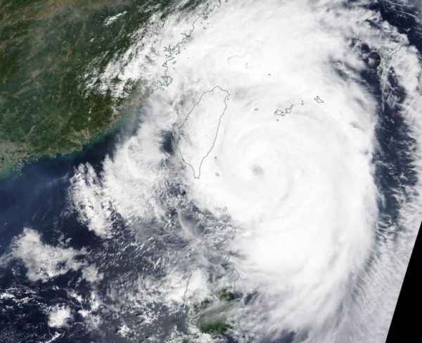 Image: On Sept. 30, the MODIS instrument that flies aboard NASA’s Terra satellite provided a visible image of Typhoon Mitag just east of Taiwan. Credit: NASA Worldview