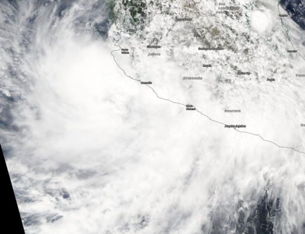 Image: On Sept. 29 the MODIS instrument that flies aboard NASA’s Aqua satellite provided a visible image of Tropical Storm Narda along Mexico’s western coast. Credit: NASA Worldview