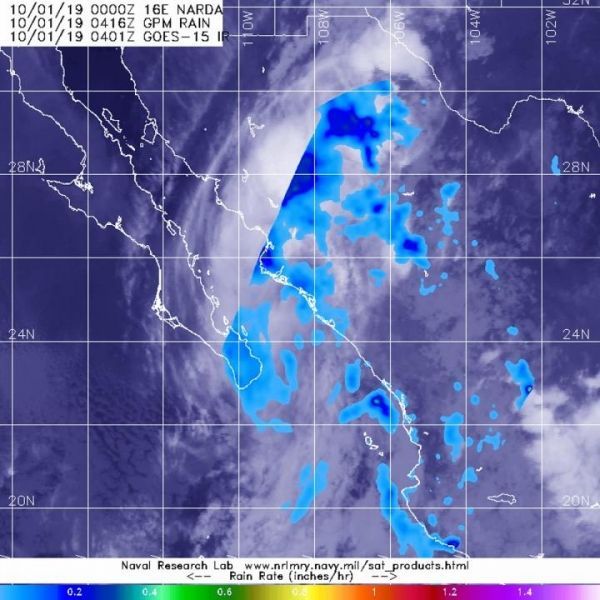 The remnant low pressure area that was formerly known as tropical cyclone Narda is still generating rainfall as it moves toward the southwestern U.S. The Global Precipitation Measurement mission or GPM satellite provided a look at the rainfall occurring on the eastern side of the system.