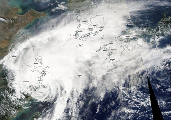 Image: NASA-NOAA’s Suomi NPP satellite passed over Typhoon Mitag in the East China Sea just off the coast of China’s Zhejiang province. The image showed Mitag’s northern reach extended to the Korean peninsula and southern Japan. Credit: NASA Worldview, Earth Observing System Data and Information System (EOSDIS)