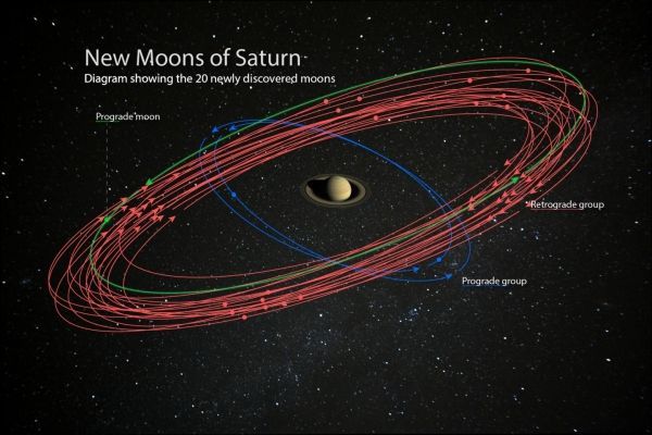 Each of the newly discovered moons is about five kilometers, or three miles, in diameter. Seventeen of them orbit the planet backwards, or in a retrograde direction, meaning their movement is opposite of the planet's rotation around its axis. The other three moons orbit in the prograde—the same direction as Saturn rotates.