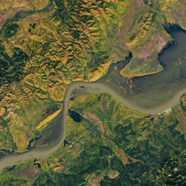 The Operational Land Imager on Landsat 8 acquired these images on September 30, 2019. They show three locations along a 120-kilometer stretch of the lower Amur, northeast of Komsomolsk-on-Amur in the Russian Far East. Fall color reaches its “peak” when air temperatures drop and shortened daylight triggers plants to slow and stop the production of chlorophyll—the molecule that plants use to synthesize food.