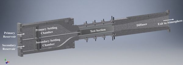Image: Compressible mixing layer facility CAD schematic. CREDIT: University of Illinois College of Engineering.