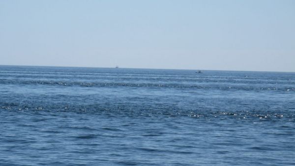 Image: Bands of smooth water alternated with bands of rough water can indicate the presence of an internal wave. CREDIT: Woods Hole Oceanographic Institution