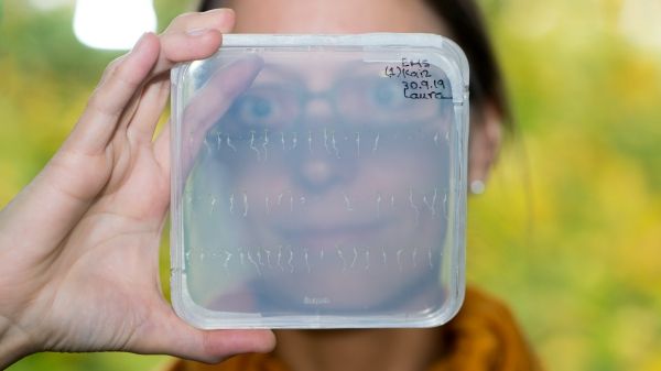Image: Prof. Dr. Caroline Gutjahr with seedlings of thale cress (Arabidopsis). CREDIT: A. Battenberg / TUM