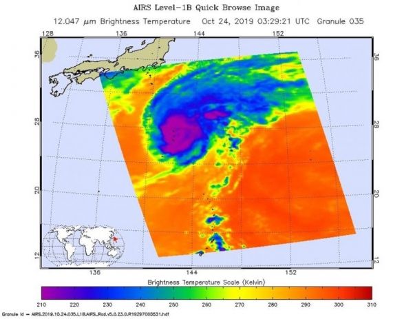 NASA-NOAA’s Suomi NPP satellite and NASA’s Aqua satellite both passed over the Northwestern Pacific Ocean and both used infrared light to obtain temperature data and shape information on Typhoon Bualoi.
