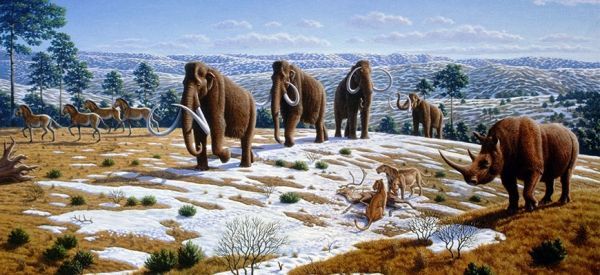 The Younger Dryas Impact Hypothesis, controversial from the time it was presented in 2007, proposes that an asteroid or comet hit the Earth about 12,800 years ago causing a period of extreme cooling that contributed to extinctions of more than 35 species of megafauna including giant sloths, sabre-tooth cats, mastodons and mammoths. It also coincides with a serious decline in early human populations such as the Clovis culture and is believed to have caused massive wildfires that could have blocked sunlight, causing an “impact winter” near the end of the Pleistocene Epoch.