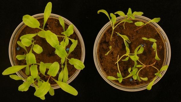 Image: These sugarbeet seedlings clearly show the effect of the presence or absence of microbial 'helping hands'. (Credit: NIOO-KNAW)