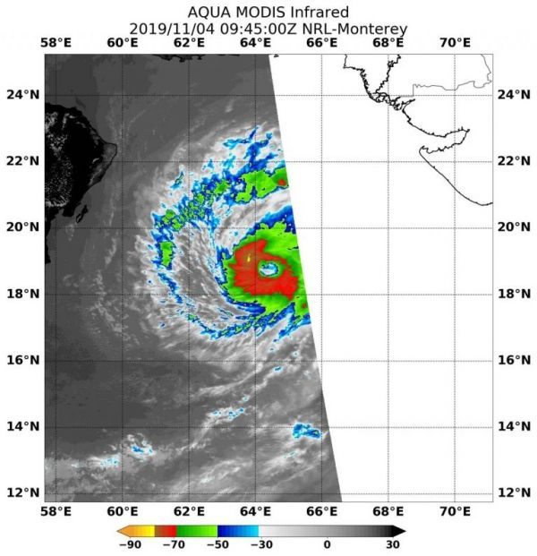 On Nov. 4 at 4:45 a.m. EDT (0945 UTC the Moderate Imaging Spectroradiometer or MODIS instrument that flies aboard NASA’s Aqua satellite used infrared light to analyze the strength of the storms within the tropical cyclone. NASA researches these storms to determine how they rapidly intensify, develop and behave.