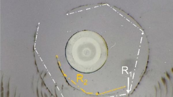 Image: These types of circular cracks first witnessed on the windshields of supersonic jets flying through rain forests may help researchers create better treatments for kidney stones. CREDIT: Pei Zhong