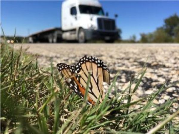 Monarch butterflies are moving south through Texas on their annual autumn migration to overwintering sites in Central Mexico, but millions die in collisions with vehicles while flying low across Texas highways. Monarch numbers have declined about 82% over the last 23 years, and road mortality can significantly contribute to their dwindling numbers.