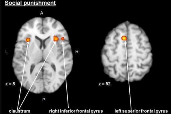 Social punishment is necessary in order to maintain order and cooperation in society. In their everyday lives, people who have committed wrongdoings may face reprimand or rejection. A decision to invoke punishment may be implemented by a person who was affected because of such a violation of norms (‘second-party punishment’), or by a neutral person, who nevertheless knows about the norm violation (‘third-party punishment’). It used to be a known fact that certain brain areas activate in victims of violations as well as in witnesses in response to different forms of social punishment. However, it was not entirely clear to date which areas were activated in particular.