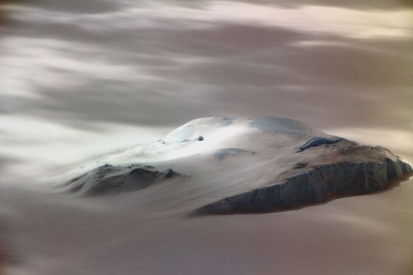 “The moody and rather spectacular lighting was what made me take the photo,” said Sonntag, a scientist at NASA’s Goddard Space Flight Center. “There was a thin, low stratus [cloud] deck at about 3,000 feet above the surface, but broken, which let direct light through at some points and not at others. It made that little berg really stand out.”